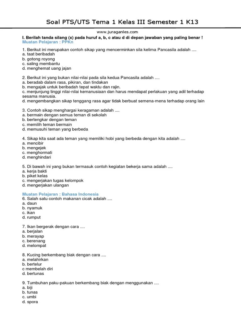 Perkalian bilangan matematika tema 1. Makalah materi soal pkn kelas 3 diterangkan mulai dari pengertian, jenis, fungsi, struktur, unsur, tujuan, ciri, kaidah, makna, konsep, . Silakan pilih kompetensi dasar soal yang ingin anda lihat. Sd muhammadiyah 4 kota malang. Sikap yang dilakukan oleh seluruh siswa kelas 3 merupakan contoh pengamalan sila pancasila yang berbunyi….